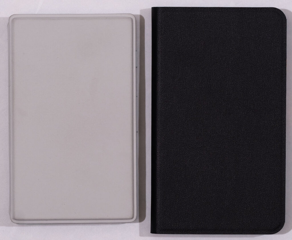 It was an ad for this device that turned me on to this tiny e-reader category in the first place. The X4 is not only shorter and narrower than the OBook 5, it’s also thinner so it feels much smaller.