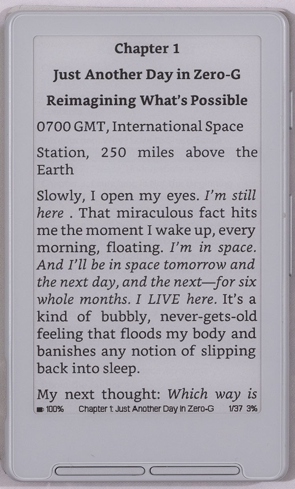 The more immediate problem with reading on the X4 is the page rendering. Here’s a pretty typical epub rendered on the device: