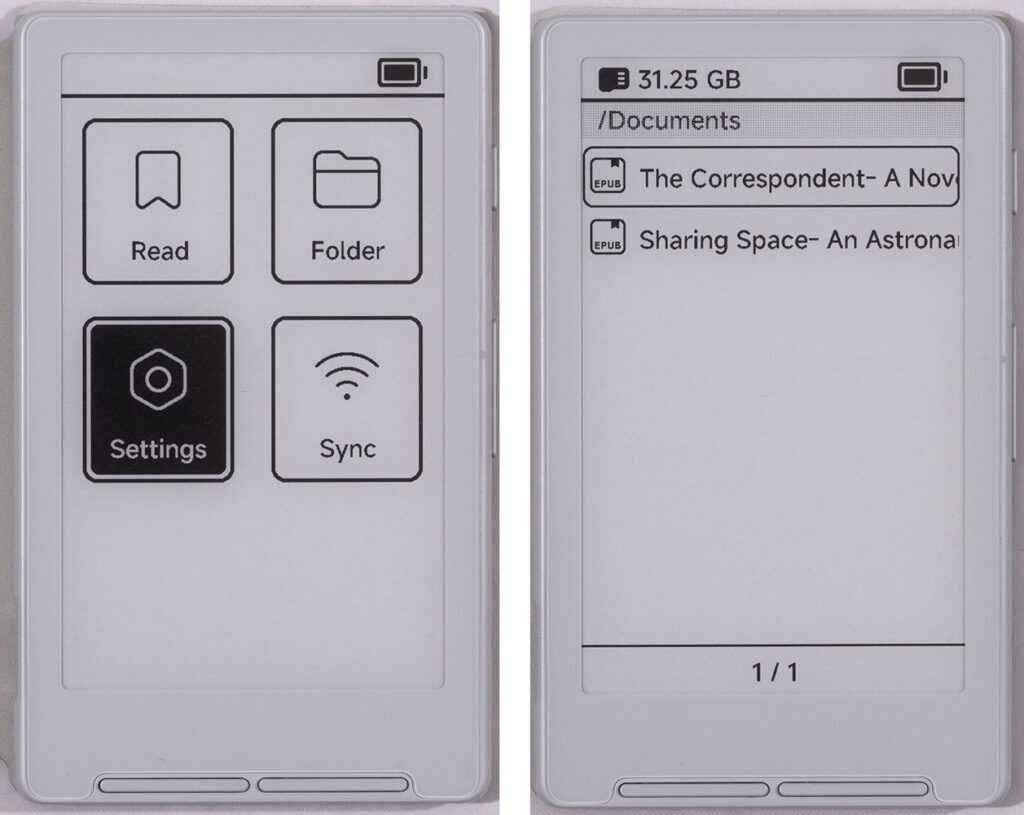 The main reason for the X4’s tiny size is that it’s built around an ESP 32 microcontroller rather than a full Arm processor like most e-readers use. While the ESP 32 means that the device has incredibly low power consumption – the battery can last for months – it also means that it can’t run a regular operating system. So, where the OBook runs some variant of Android, the ESP 32 has custom firmware that simply knows how to write images directly to the screen. There’s no application layer, like there is on a normal e-reader, so the X4’s engineers don’t have a lot of off-the-shelf software to rely on. That, and the fact that they’re a Chinese company that seems primarily focused on the Chinese market makes for some rough English-language usability on the X4. But, as you’ll see, this doesn’t have to be a deal-breaker.