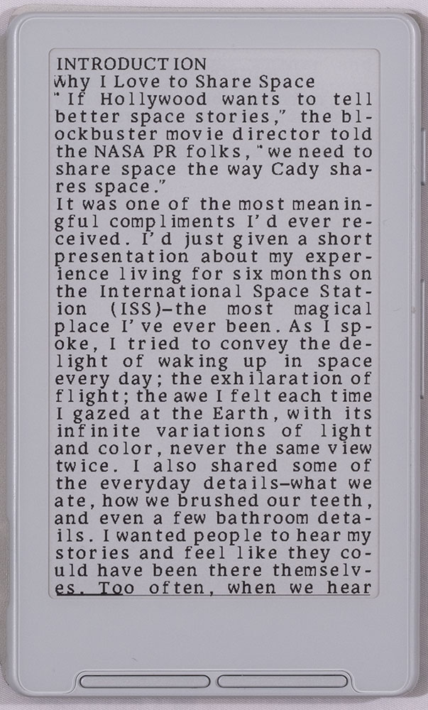 The biggest adjustment with the screen is that it’s a 1-bit display, which means the text is not anti-aliased. It definitely looks ragged compared to my Kindle. At first this was a little distracting, but now I’m pretty used to it. I wouldn’t want this level of text quality to be my only reader, but for the way I use the device, it’s fine. The fact is, it’s still better quality than reading, say, a used paperback from the early-70s, which will suffer from low contrast and rough pulp paper that leaves text with chunky edges.